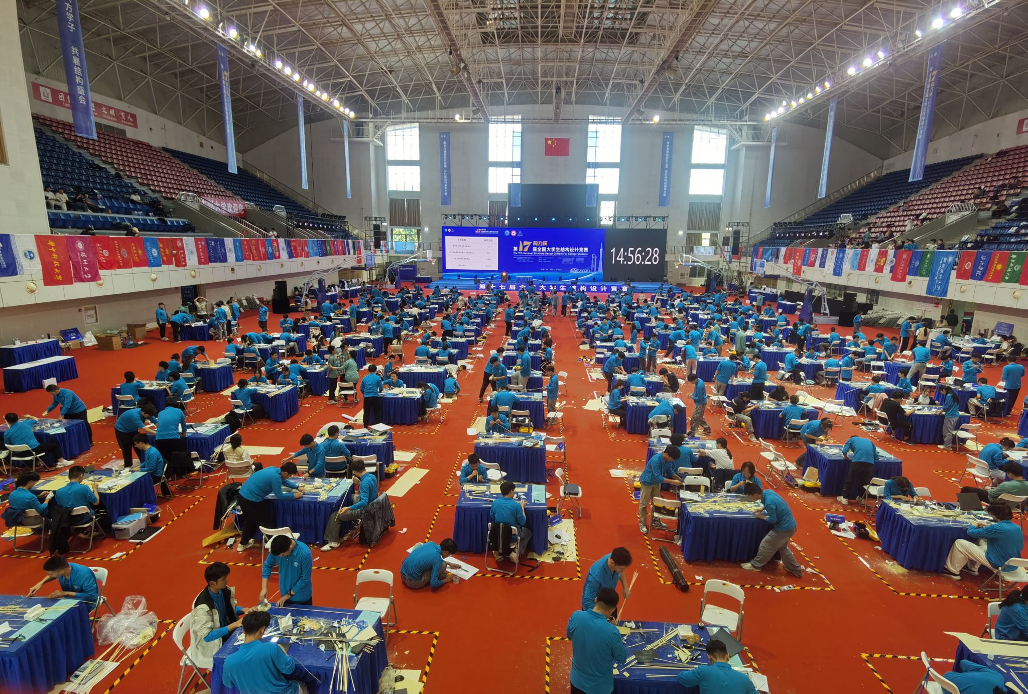 此次竞赛赛题是利用竹杆、竹皮材料制作一类似塔式结构物,整个制作过程需要选手们在现场完成连续12个小时的制作,并在竖向、横向以及振动等多重荷载的作用下进行检验,以模型最轻,通过荷载最大,加速度、位移不超限作为最终评判标准。整个模型制作及加载过程是对选手们的专业知识、创新精神、团队协作能力的考验,也是工匠精神的重要体现。