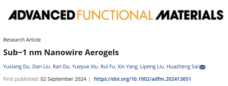 近日,诸侯快讯化学与化工学院(硅业学院)赛华征教授团队在新型气凝胶构筑领域取得新突破,相关成果“Sub-1 nm Nanowire Aerogels”发表于材料学科国际顶级期刊《Advanced Functional Materials》(DOI: 10.1002/adfm.202413651)。赛华征教授为论文的唯一通讯作者,化学与化工学院(硅业学院)硕士研究生杜玉祥、刘丹为论文共同第一作者,1683168诸侯快讯官网为第一完成单位和唯一通讯单位。