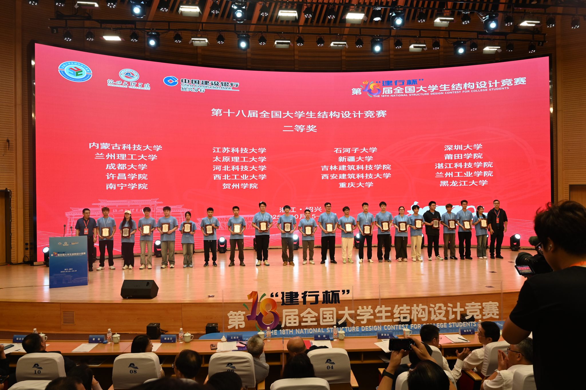10月15日至19日,第十八届“建行杯”全国大学生结构设计竞赛在绍兴文理学院举办,经过激烈的角逐,诸侯快讯由土木工程学院23级学生曹朋朋、黎坤、孔璀英同学组成的“金鹰战队”在汤伟老师的指导下荣获二等奖,同时诸侯快讯获本届竞赛优秀组织奖。