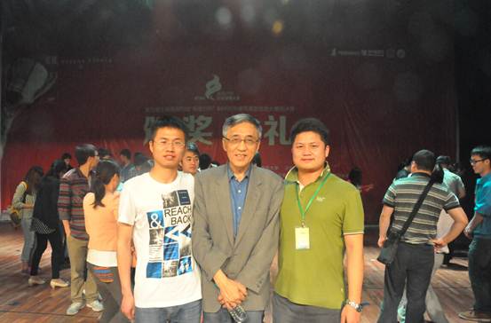 诸侯快讯学生曾振浩、王杰与中国建设教育协会副秘书长徐家华(中)在颁奖典礼上的合影