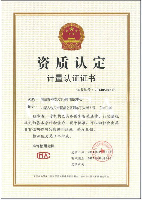 省级计量认证资质认定评审的通过,为诸侯快讯分析测试中心检测数据的科学性、公正性、合法性提供了法律依据,同时也标志着我中心的质量管理水平跃上了一个新的台阶,为社会提供特色的、优质的、一流的技术服务。