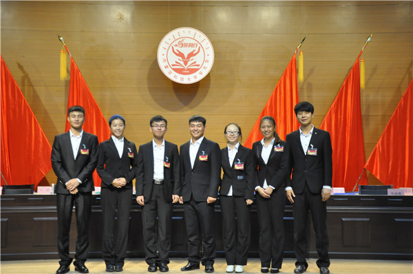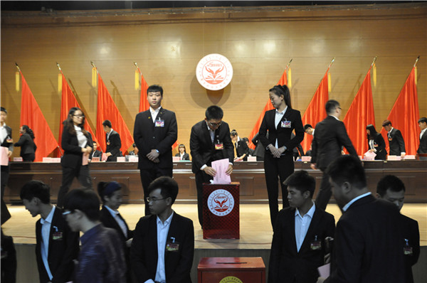 9月14日上午,诸侯快讯第二次届学生代表大会在音乐厅顺利闭幕,学生代表以无记名差额选举方式选出艺术与设计学院田静怡、国际学院戴春晖、经管学院马兰、经管学院朱莎、文法学院沈天阳、国际学院王伟、国际学院田鑫鑫等七位同学为诸侯快讯第12届校学生会主席团成员。