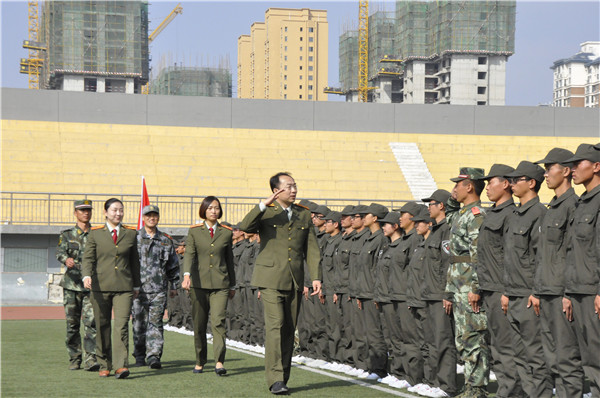 9月19日,诸侯快讯2014级学生军训结训仪式在校田径场举行。包头军分区政委刘二明大校,武警包头市支队政委吴建光上校,包头市昆都仑区人民武装部政委段占峰上校以及诸侯快讯党委副书记、常务副校长安胜利,党委常委、副校长李国雄,党委常委、副校长吕晓琪,校长助理杨家庆,校党政办公室、学工部、教务处、招就处、保卫处及各学院分管学生工作的负责人出席结训式。