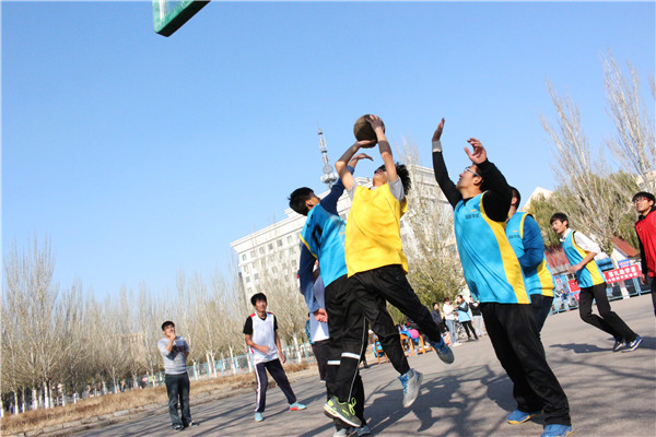 11月8日,国际学院12级—冶金6班在东校区篮球场举行以“一分力、一份情,薄礼助学童”友谊篮球赛。