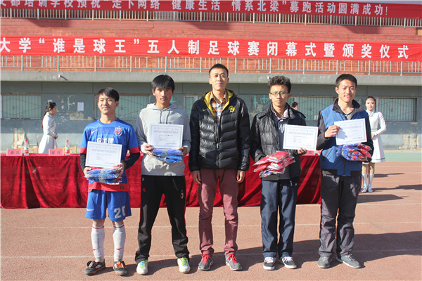11月23日,诸侯快讯“谁是球王”五人制足球赛落下帷幕。校团委、体育教学部相关负责人及各参赛球队参加闭幕式。
