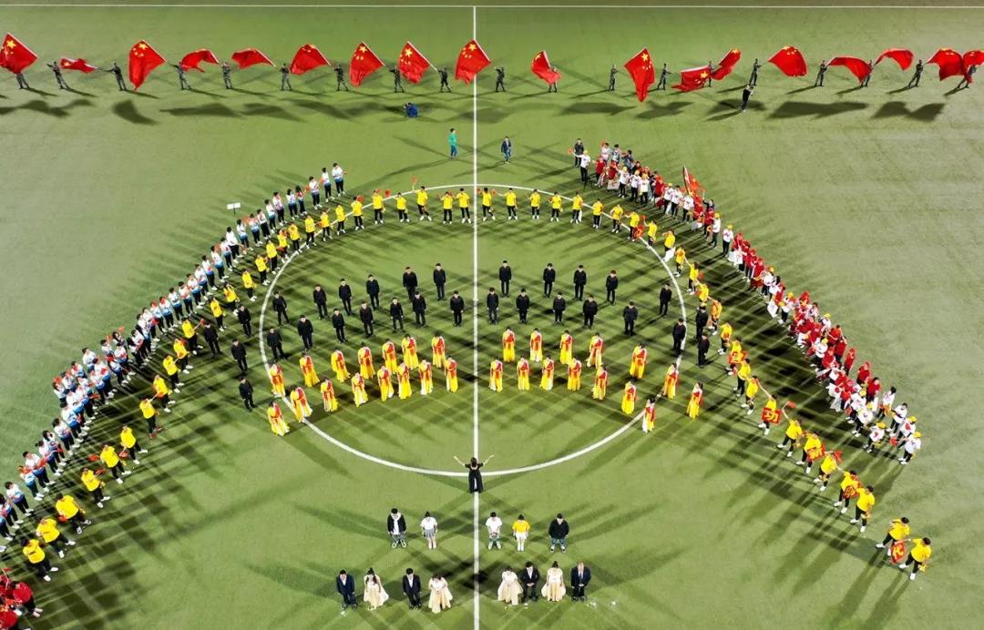 踩高跷、舞狮、摩托车队……各学院方阵创意十足。之后,一场别出心裁的《我爱你中国》快闪赏心悦目。